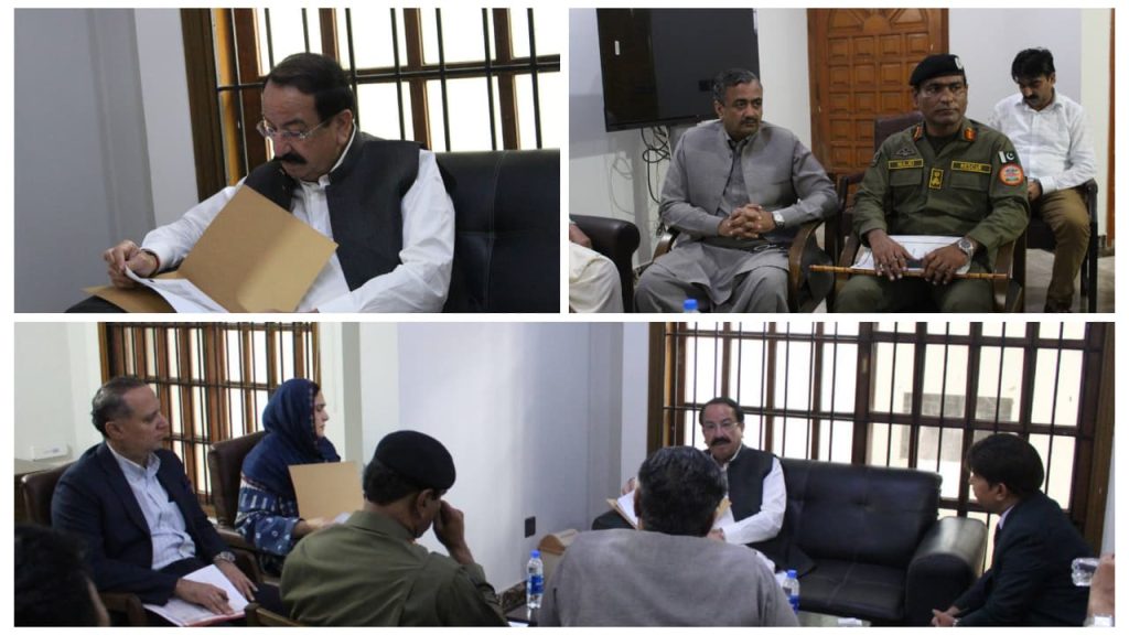 The meeting, held at the Secretary Rehabilitation Department’s office, was attended by Secretary Rehabilitation Mr. Akhter Hussain Bugti, Director General PDMA Mr. Syed Salman Shah, Director General Rescue 1122 Mr. Sabghatullah Wajid, Additional Secretary Nazeer Soomro, Director Finance PDMA Shah Hussain along with other senior officials of the department.